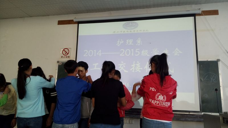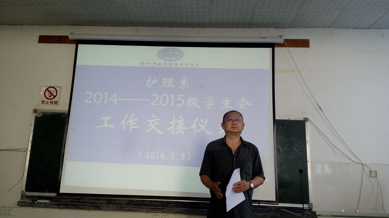 根据护理系学生会组织工作安排,14级学生会工作已经完成履职,为更好做好2016年系部相关工作,实现学生会工作的整体平稳过渡。2016年5月5日中午12:00,护理系学生会在学校第二阶梯教室隆重举行2014—2015级学生会工作交接仪式。14、15以及12五专学生会成员、14级主席团成员等近70人参加了会议,系总支张维平书记、主持工作许家萍副主任以及辅导员李剑、李永梅应邀出席了会议,会议由14级学生会主席团成员副主席沈超群主持。