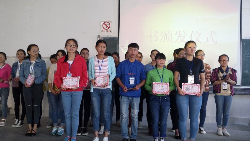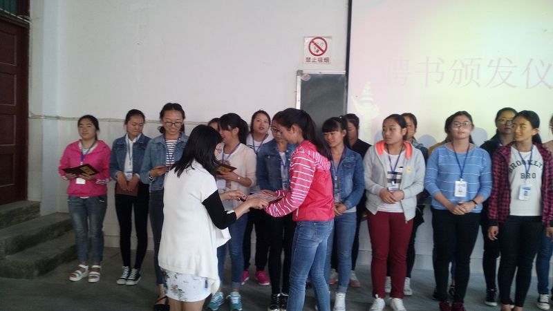 最后,出席工作交接仪式的系部领导为卸任的全体学生会成员发放了任内的聘书。工作交接仪式圆满结束,会后14级全体学生会成员还与参会领导合影留念。