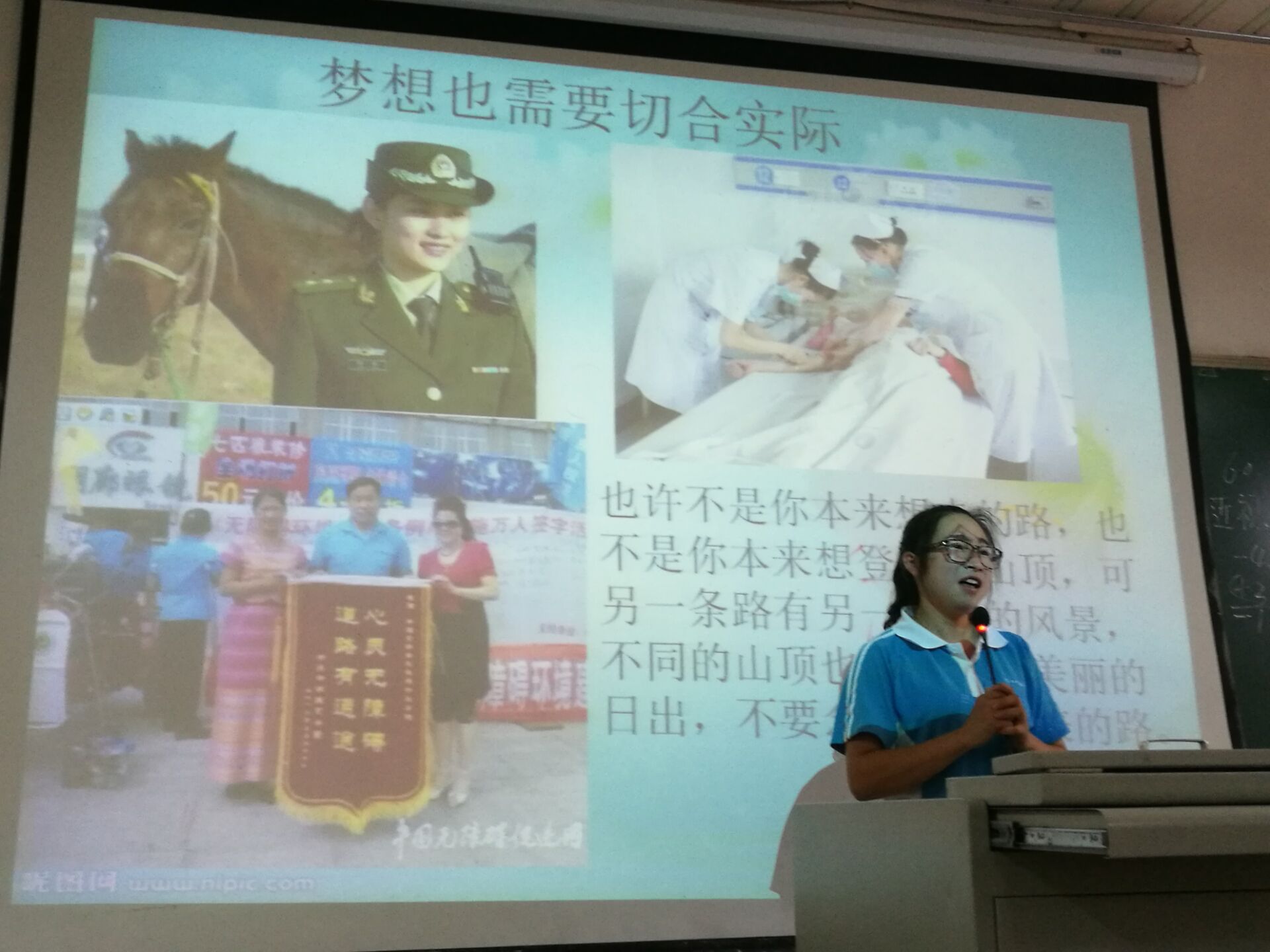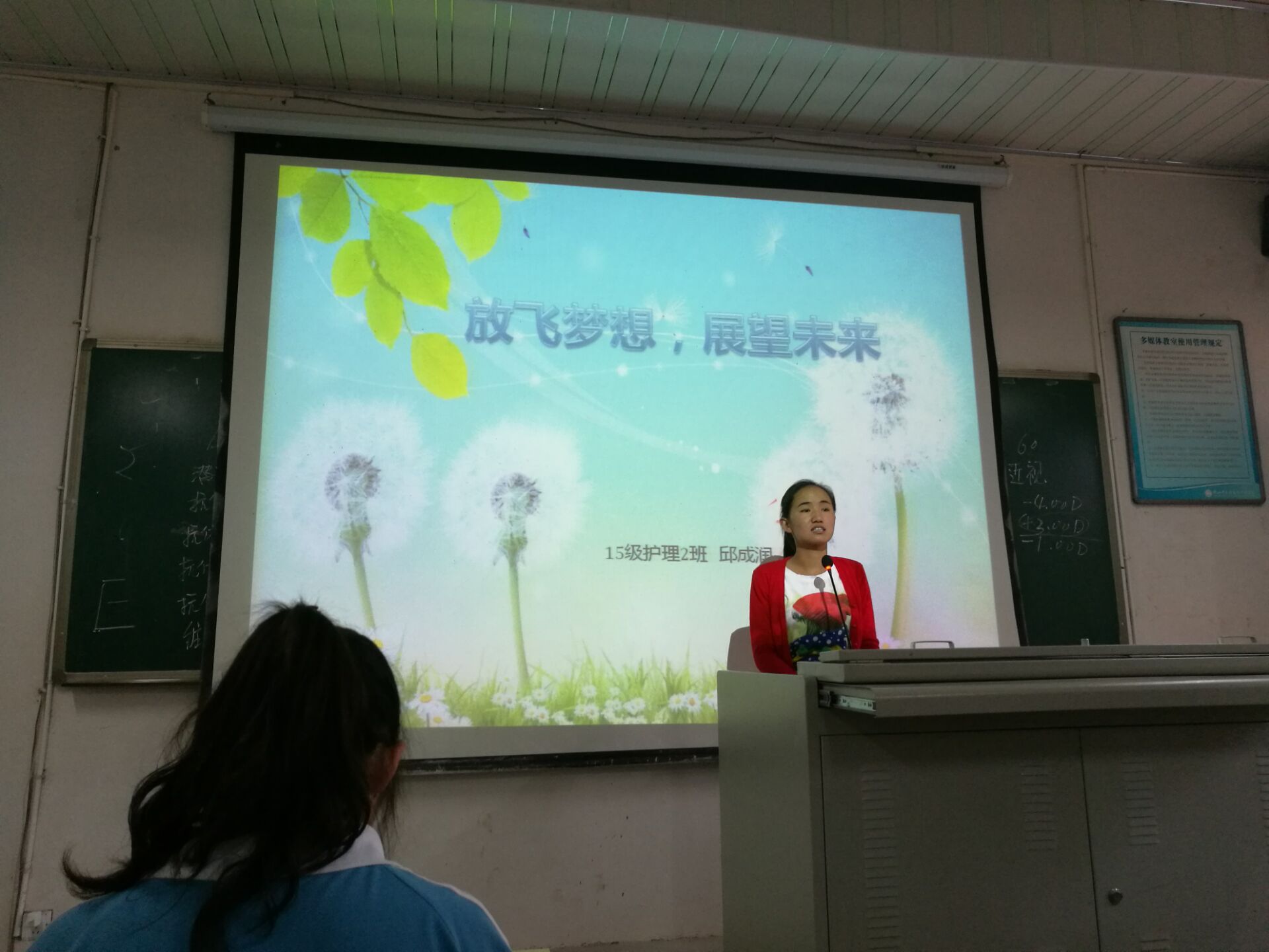 2016年6月10日下午6:30,护理系在学校第三阶梯教室举行了2016年春季学期“自由讲坛”(第14期)讲座活动,讲座以“放飞梦想,展望未来”为主题,讲座由护理系发起,系学生会具体负责承办。活动特别邀请到了系辅导员李永梅老师到场指导,来自全系12个班的近130同学到场倾听了讲座。担任讲座主讲人的分别是从初赛中脱颖而出的杨莹,邱成润,杨云梅,杨梓汐四名同学。