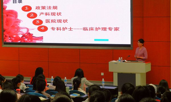 黄春丽以国内对专科护士的角色要求导入,从临床实践能力、教学能力、管理能力、科研能力为同学们明确未来专业发展的具体定位。随后利用典型案例从产科护士专科发展的政策法规、产科现状、医院现状、产科护士--临床护理专家—助产专家四个方面讲述产科专科护士发展的前景和努力方向。
